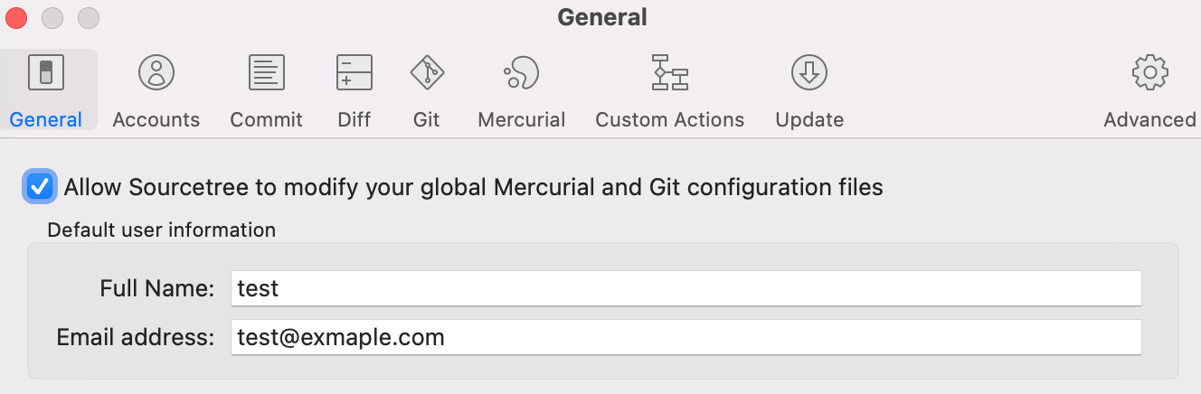 1) 다음과 같이 General에서 사용자 정보를 설정할 수 있습니다.