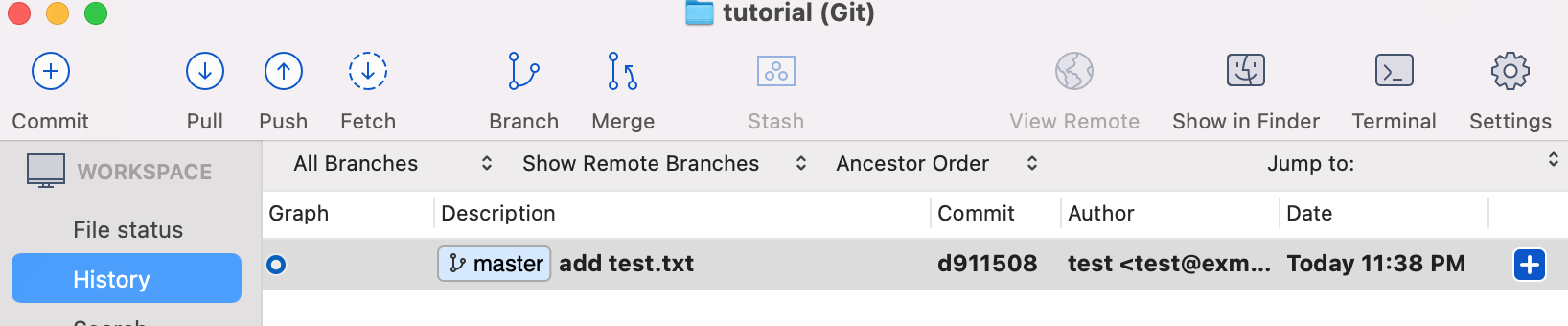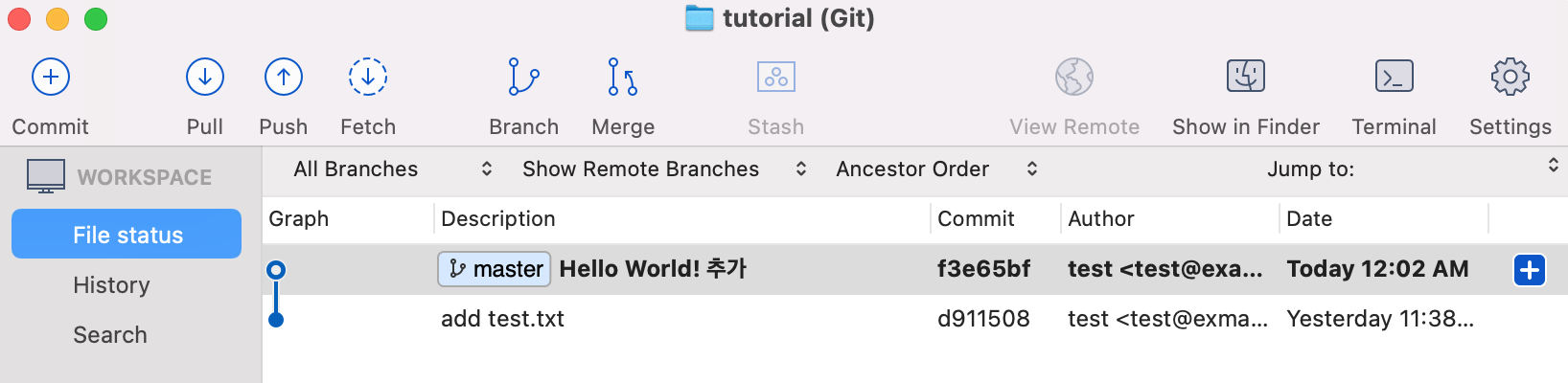 2. Sourcetree를 확인하여 다음과 같은 변화를 확인합니다.