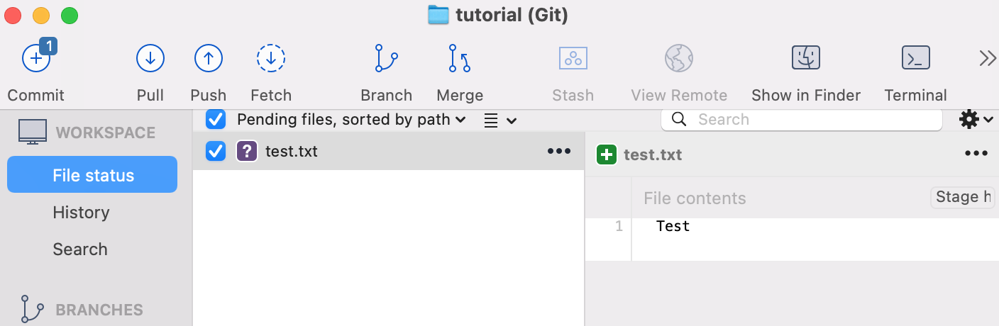 1. Local Repository에 버전을 만들 파일을 추가합니다.
