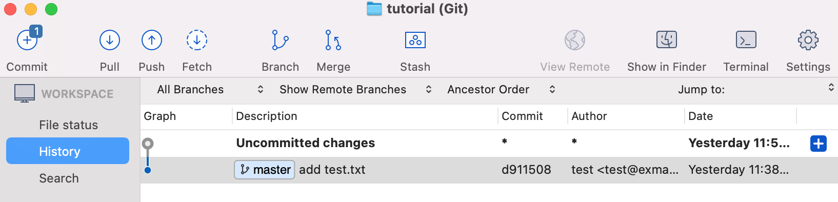 2. Sourcetree를 확인하여 다음과 같은 변화를 확인합니다.