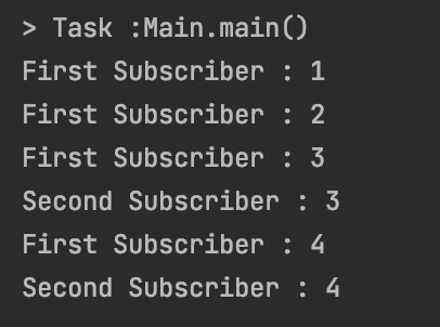 - 소비자는 발행된 데이터를 처음부터가 아닌, 구독한 시점부터 통지된 데이터만을 전달 받을 수 있다.