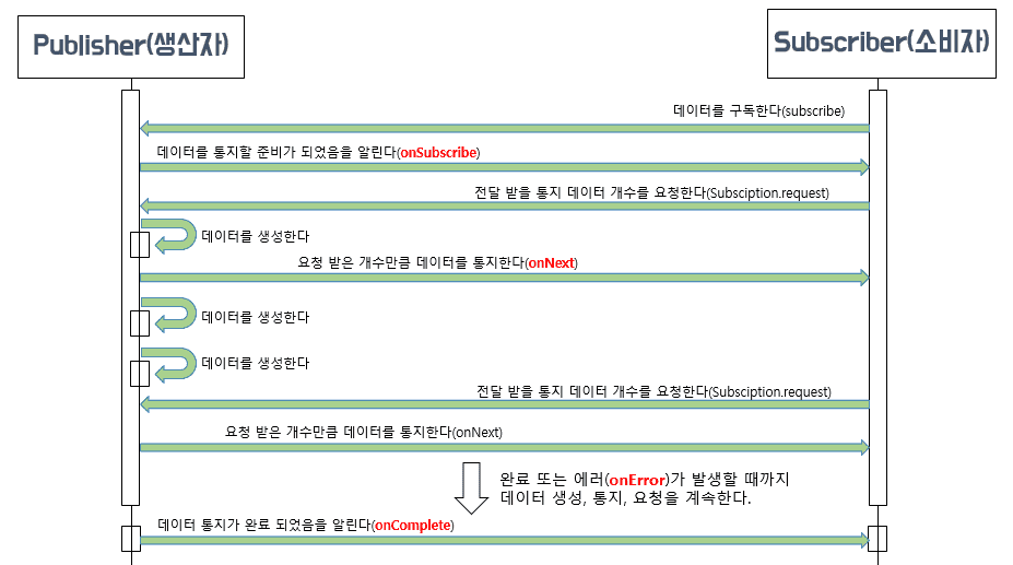 - Subscription : 전달받을 데이터의 개수를 요청하고 구독을 해지한다.