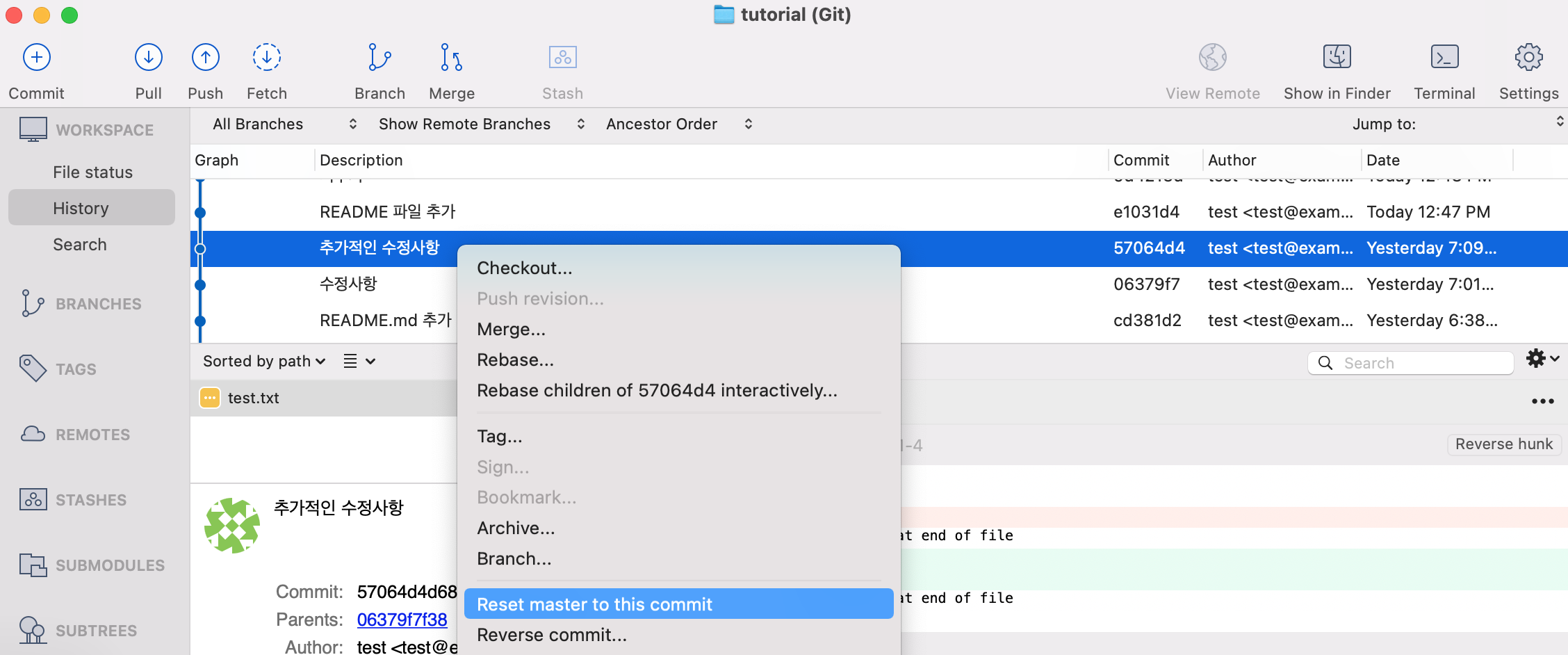 Git & Sourcetree - Reset의 다양한 옵션 사용해보기 본문