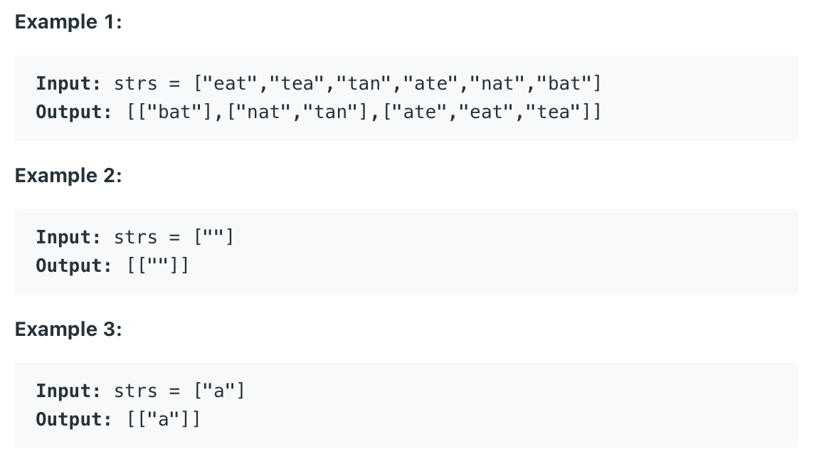public List<List<String>> groupAnagrams(String[] strs) {