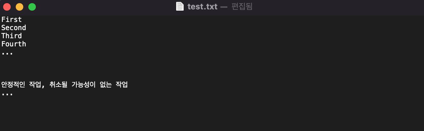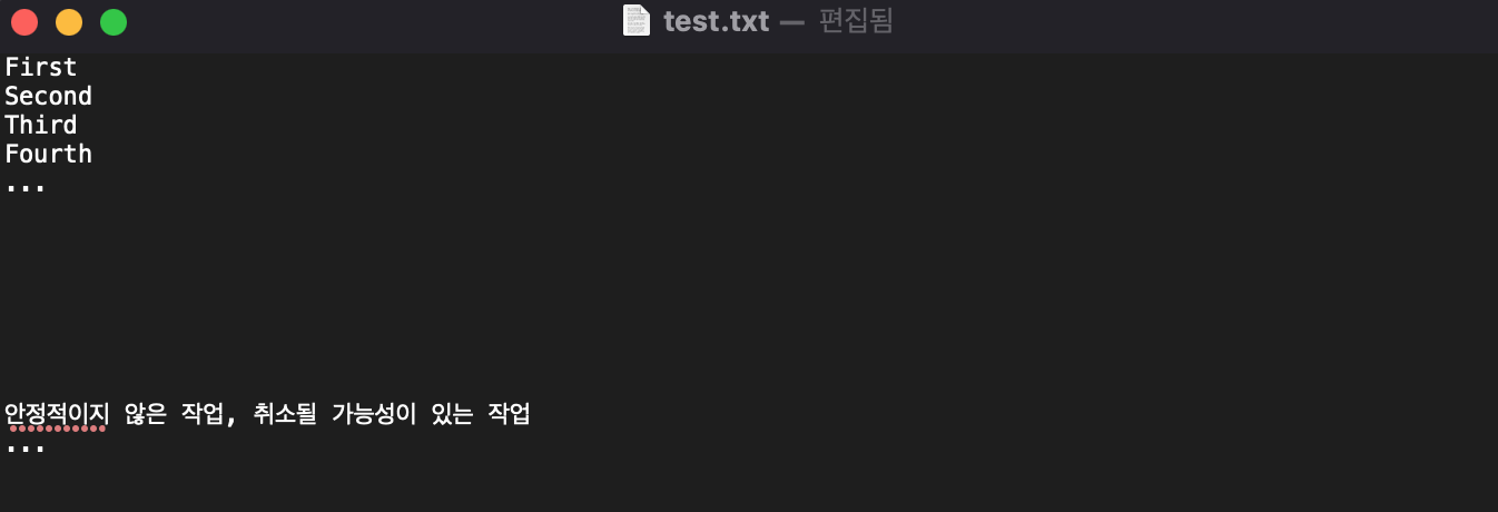 - test 브랜치로 이동하여 test.txt 파일을 열어 확인해본 후 master 브랜치가 선택되었을 때랑 어떠한 차이점이 있는지 알아봅니다.