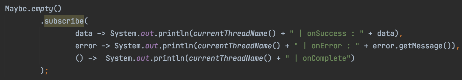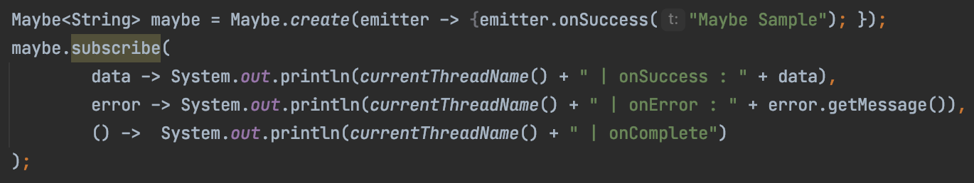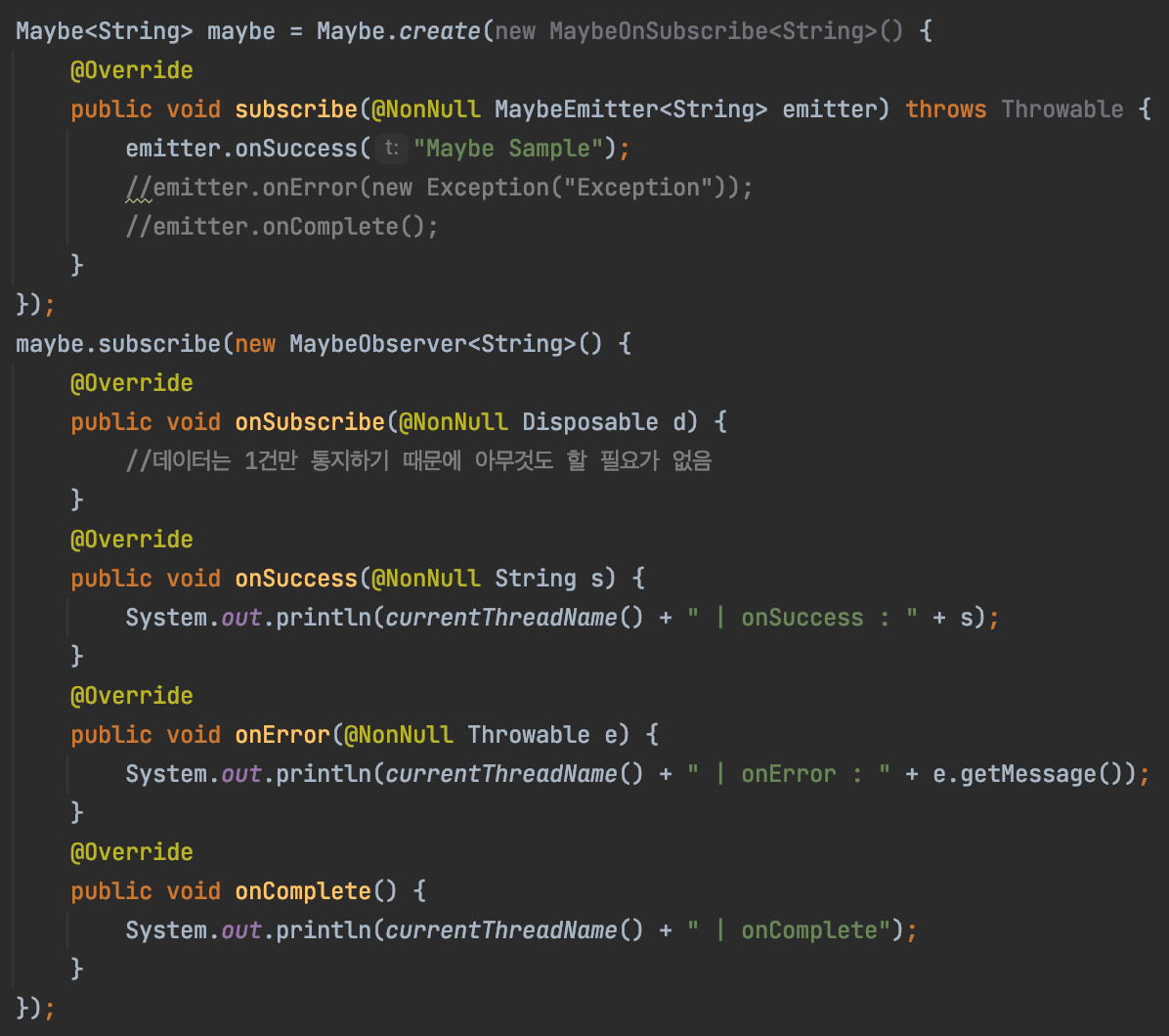 - Maybe의 대표적인 소비자는 Observer 인터페이스를 구현한 MaybeObserver입니다.