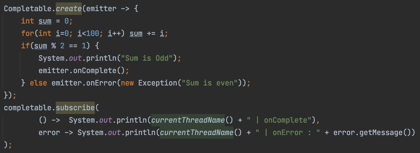 - Completable의 대표적인 소비자는 Observer 인터페이스를 구현한 CompletableObserver 입니다.