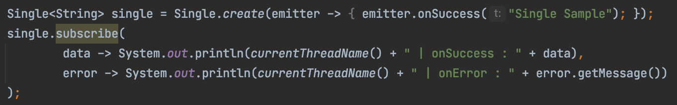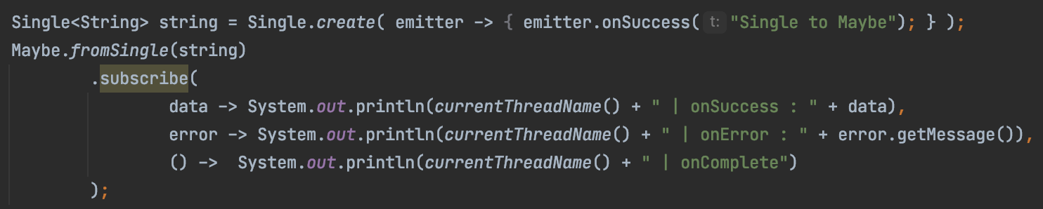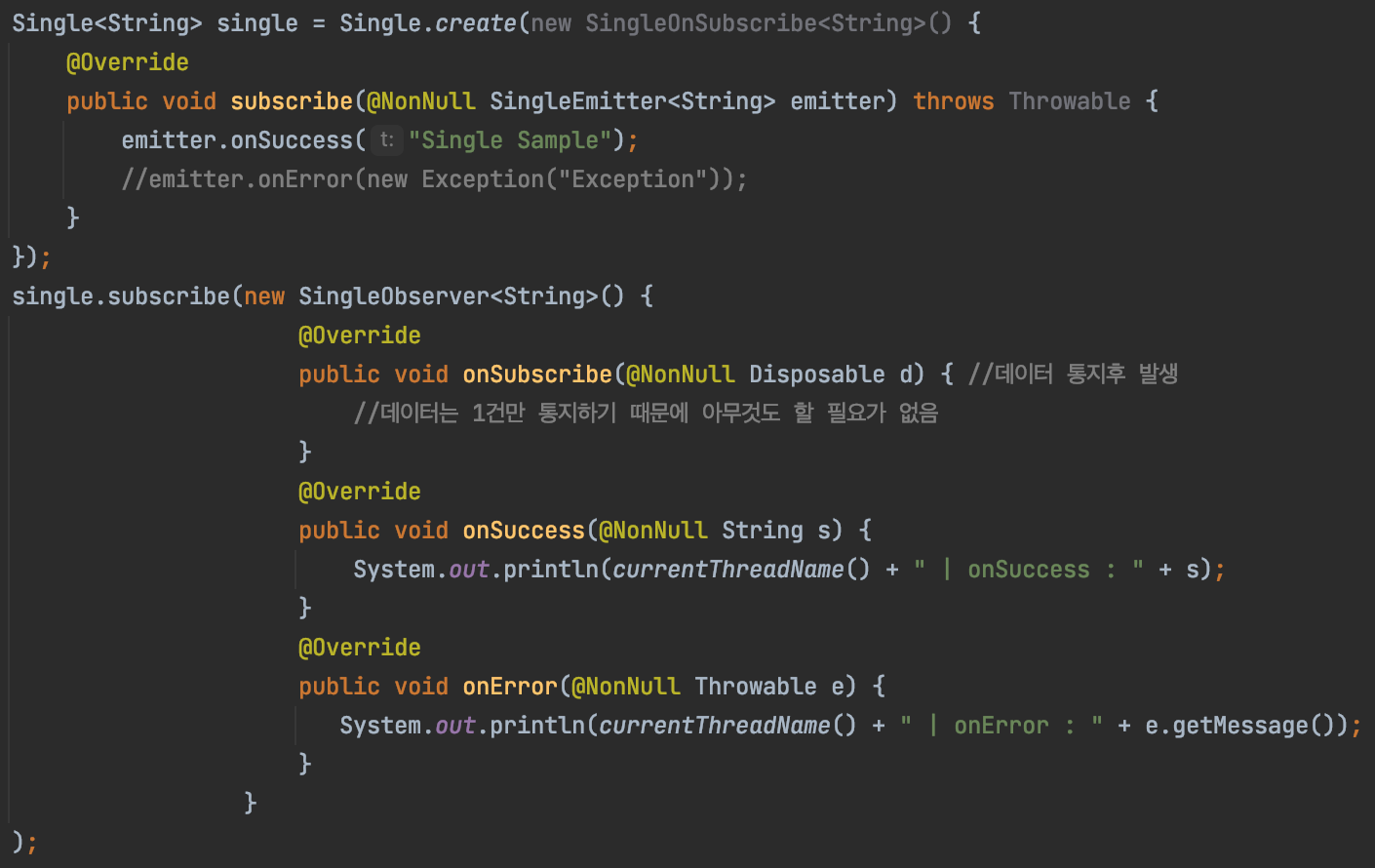 - onNext(), onComplete()가 없으며, 이 둘을 합친 onSuccess()만을 제공합니다.