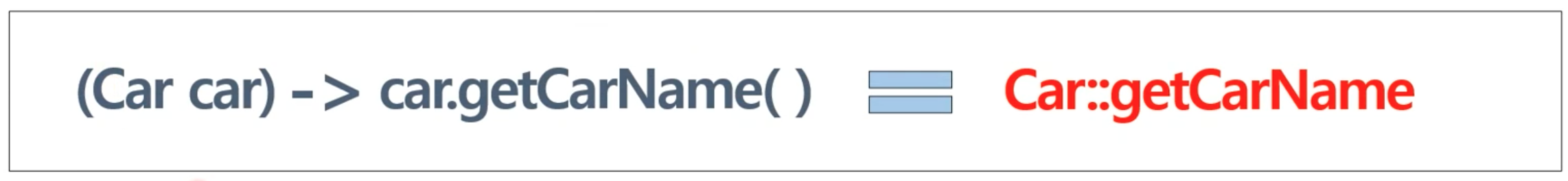 - 예) (String s) -> Integer.parseInt(s) --> Integer::parseInt