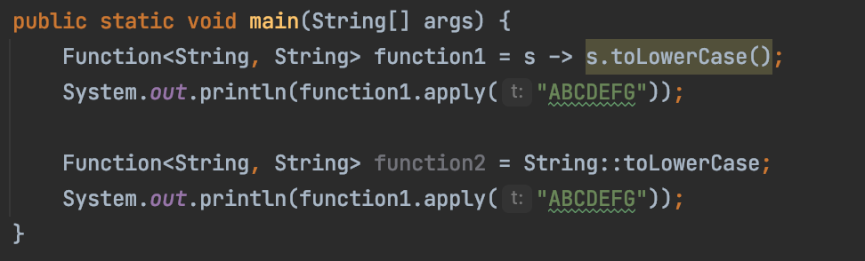 - 예) (String s) -> s.toLowerCase() --> String::toLowerCase