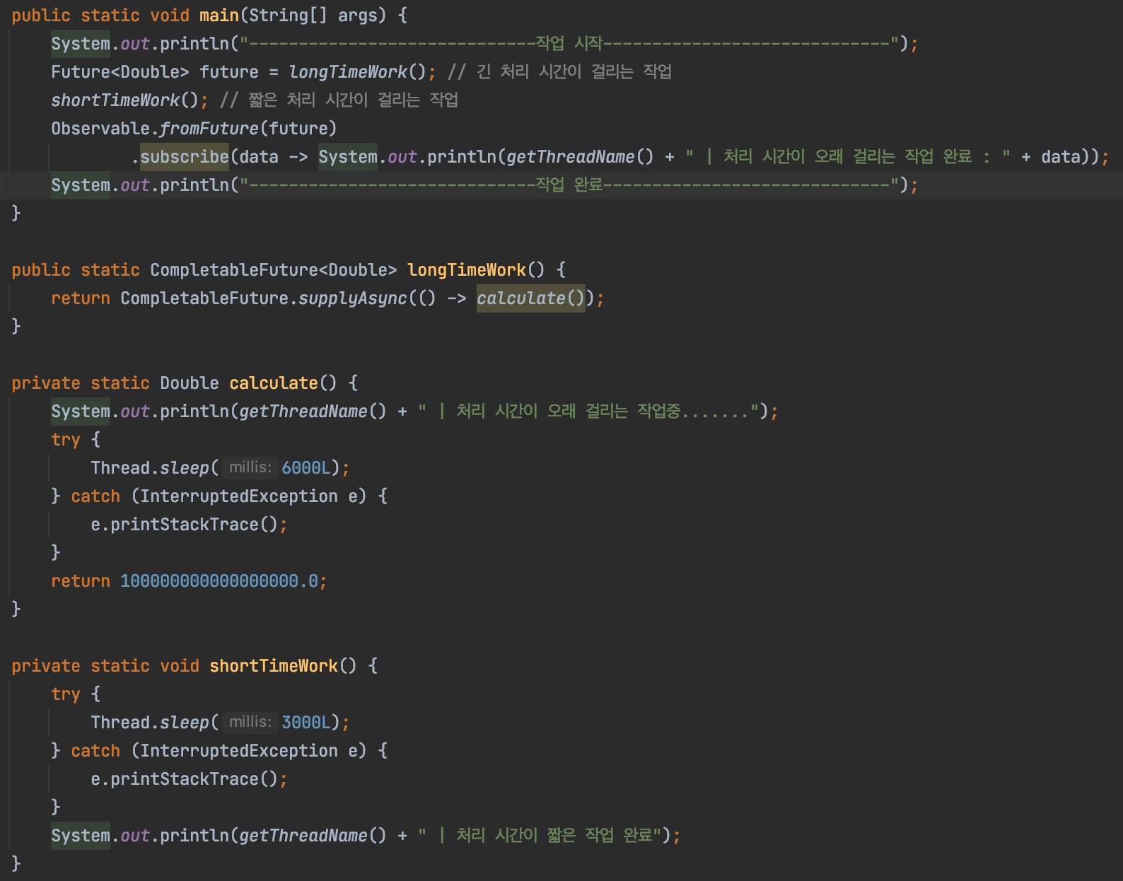 - Java 8에서는 CompletableFuture 클래스를 통해 구현이 간결해졌습니다.