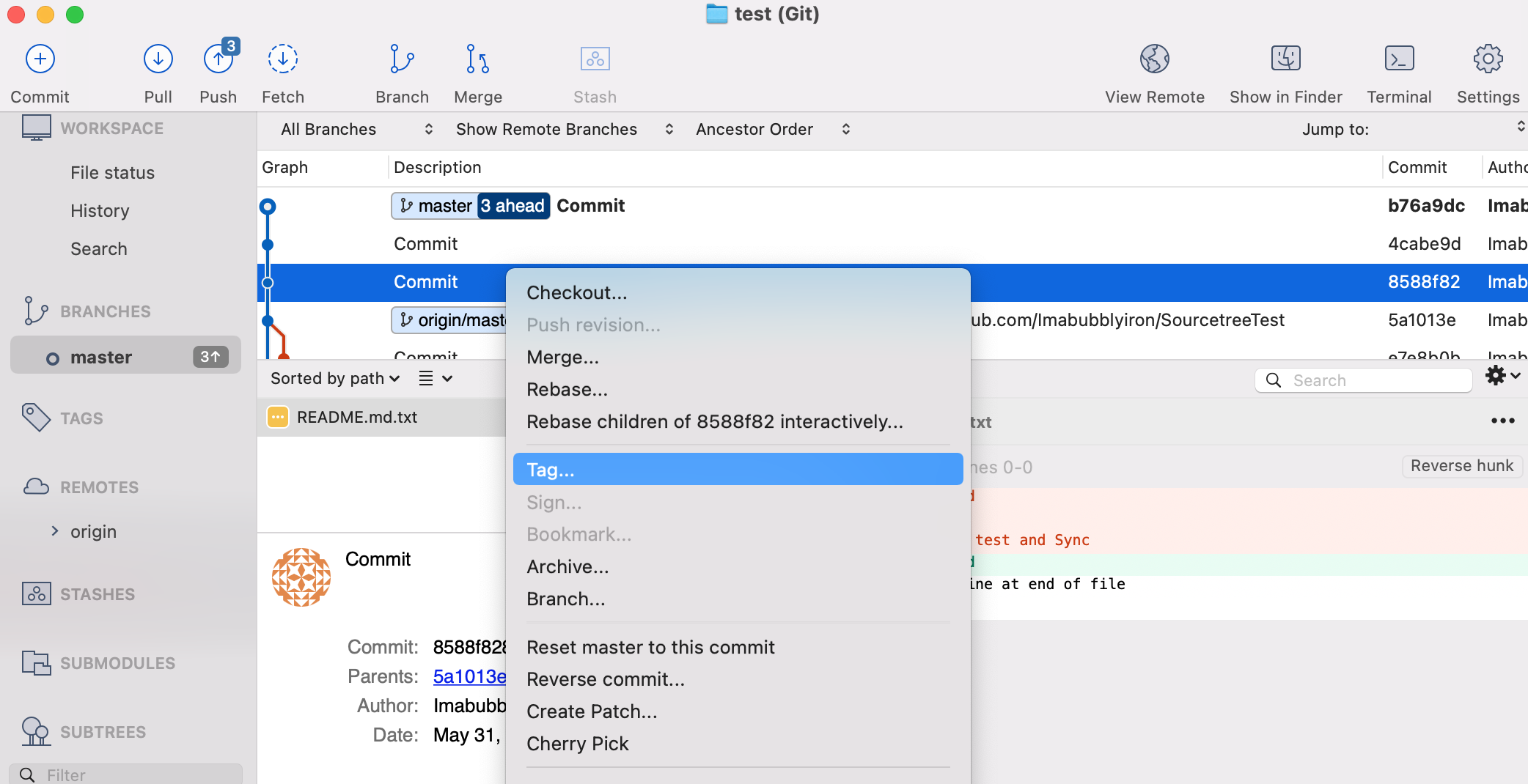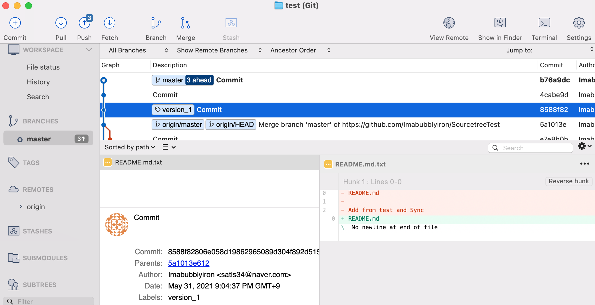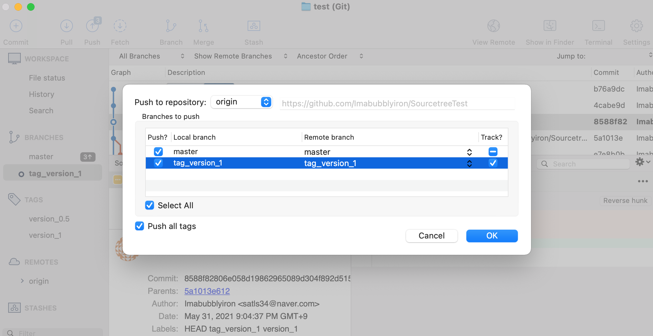 3. 로컬 저장소의 Tag를 원격 저장소에 Push 하기