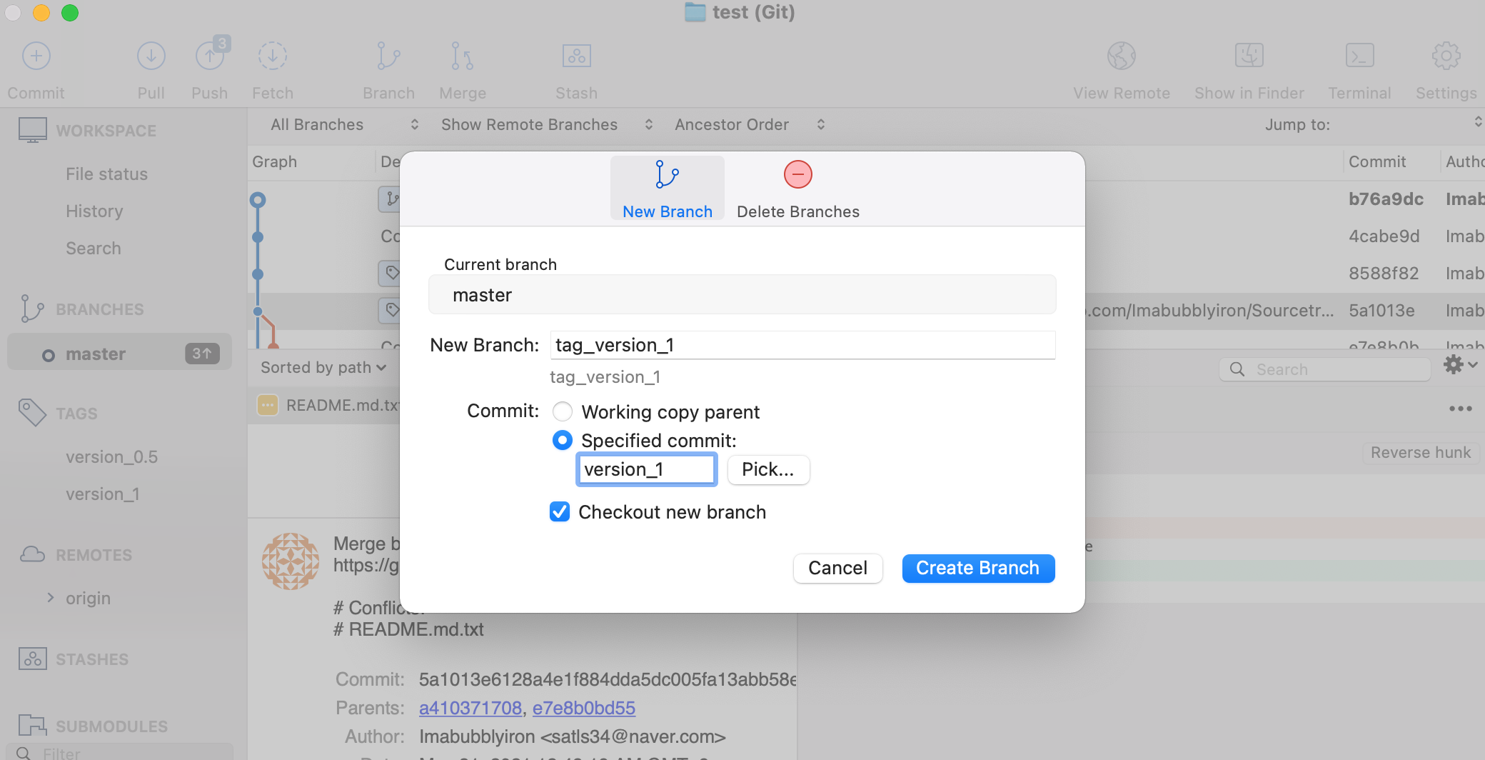 2. 새로운 브랜치를 만들 때 특정한 Tag가 있는 버전으로부터 시작하는 방법을 알아보도록 합니다.