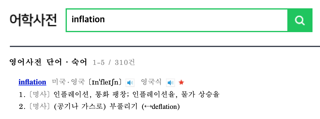 아마 다들 경제학 용어로 많이 들어봤을 것이다. 안드로이드에서 Inflation이 의미하는 것은 팽창이라는 의미에 가깝다고 생각한다. 뒤에서 다시 한 번 언급하겠지만, Inflation이란 과정은 눈에보이지 않던(코드로만 작성되어 있는) XML 파일이 실제 메모리에 적재(객체화)되어 화면을 통해서 보여지게 되는데, 이 때 사전적으로 봤을때 팽창하는 것에 비슷한 느낌을 받기 때문이다.
