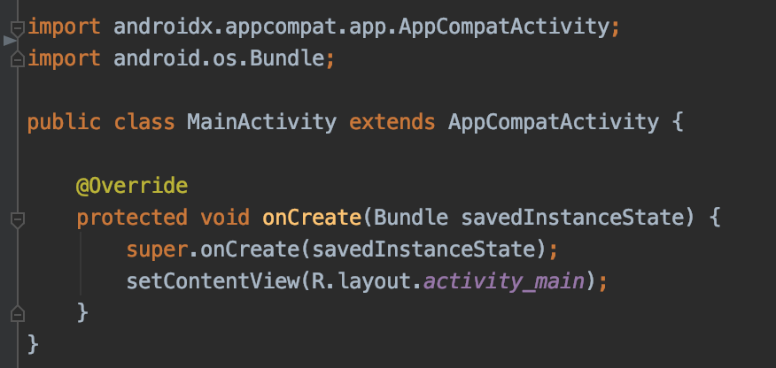안드로이드 스튜디오를 켜서 프로젝트를 만들면 위와 같은 화면이 나타날 것이다. 그리고 기본 프로젝트에서 가상 기기나 실제 기기를 실행해보면 Hello World! 라고 노출되는 기본 설정이 되어있는 앱이 실행되는 것은 누구나 다 알 것이다. 여기서 생각해볼 수 있는 것은 activity_main.xml 파일이 인플레이션 과정을 통해서 화면으로 보여지고 있다는 것이다. 과연 어디서 인플레이션이 일어나고 있는 것일까? 이제 한 번 실험을 해보도록 하자.
